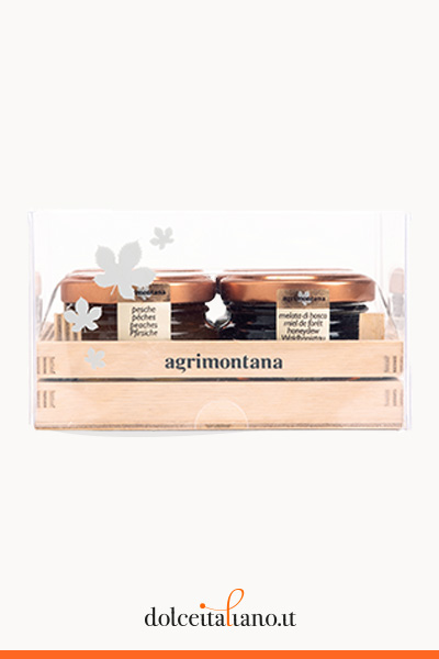 Wooden Crate with 3 Jams and 1 Honey by Agrimontana