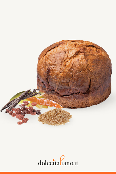 Ingredienti: FARINA di grano tenero tipo 00, BURRO di latteria, PASTA MADRE,TUORLO d'uovo fresco, zucchero di canna grezzo, uvetta (11%), cedro e arancia candita (12%),pasta arancia, sale, vaniglia in bacche tahiti, miele di acacia.